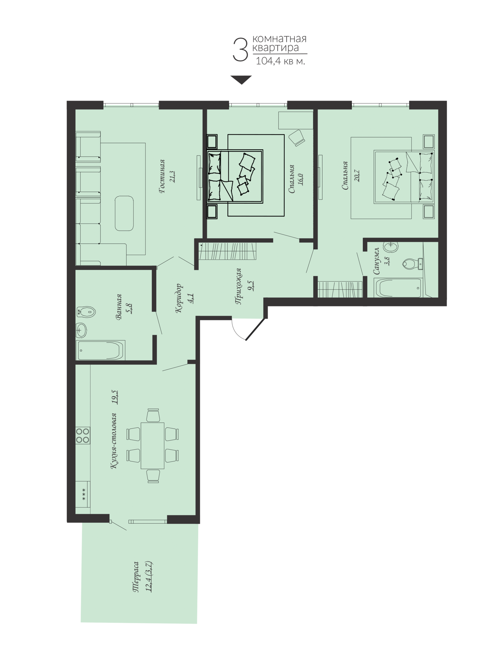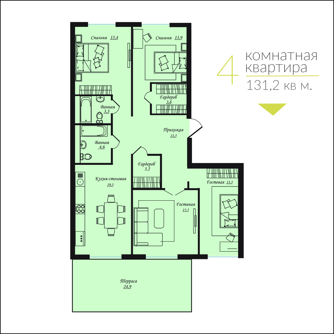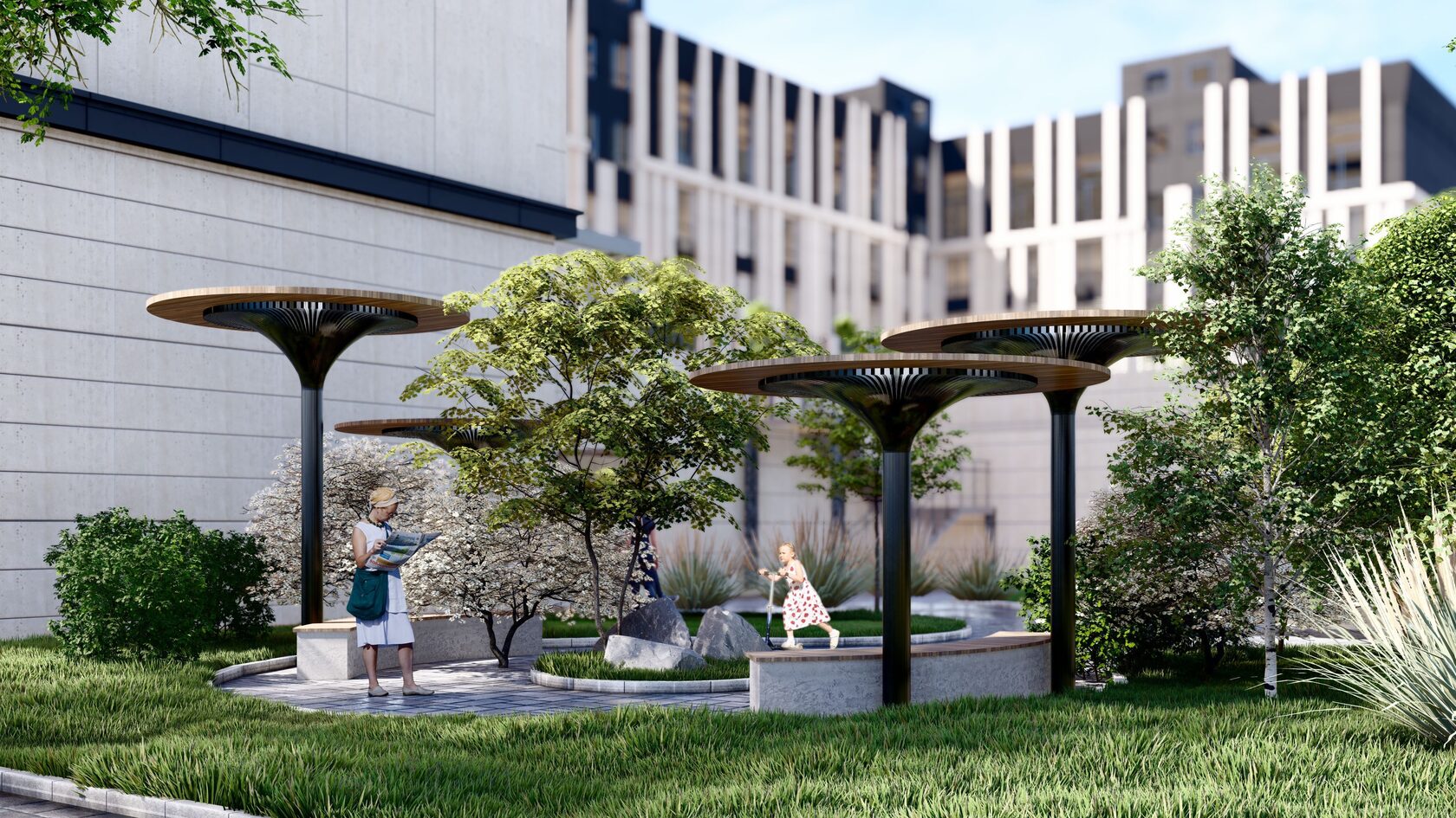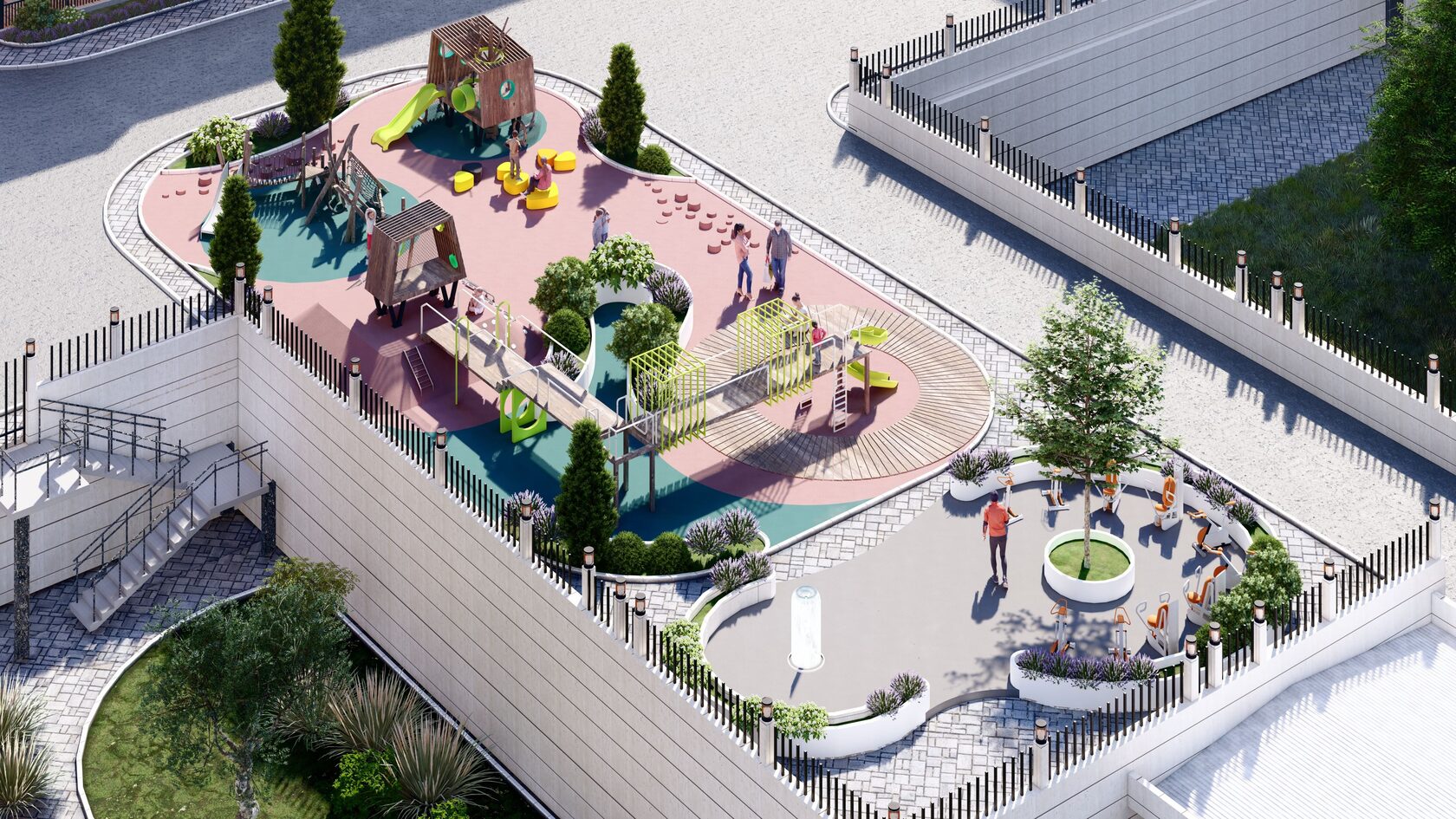 Комплекс гармонично вписывается в престижный район Караганды, подчеркивая его элитный характер.